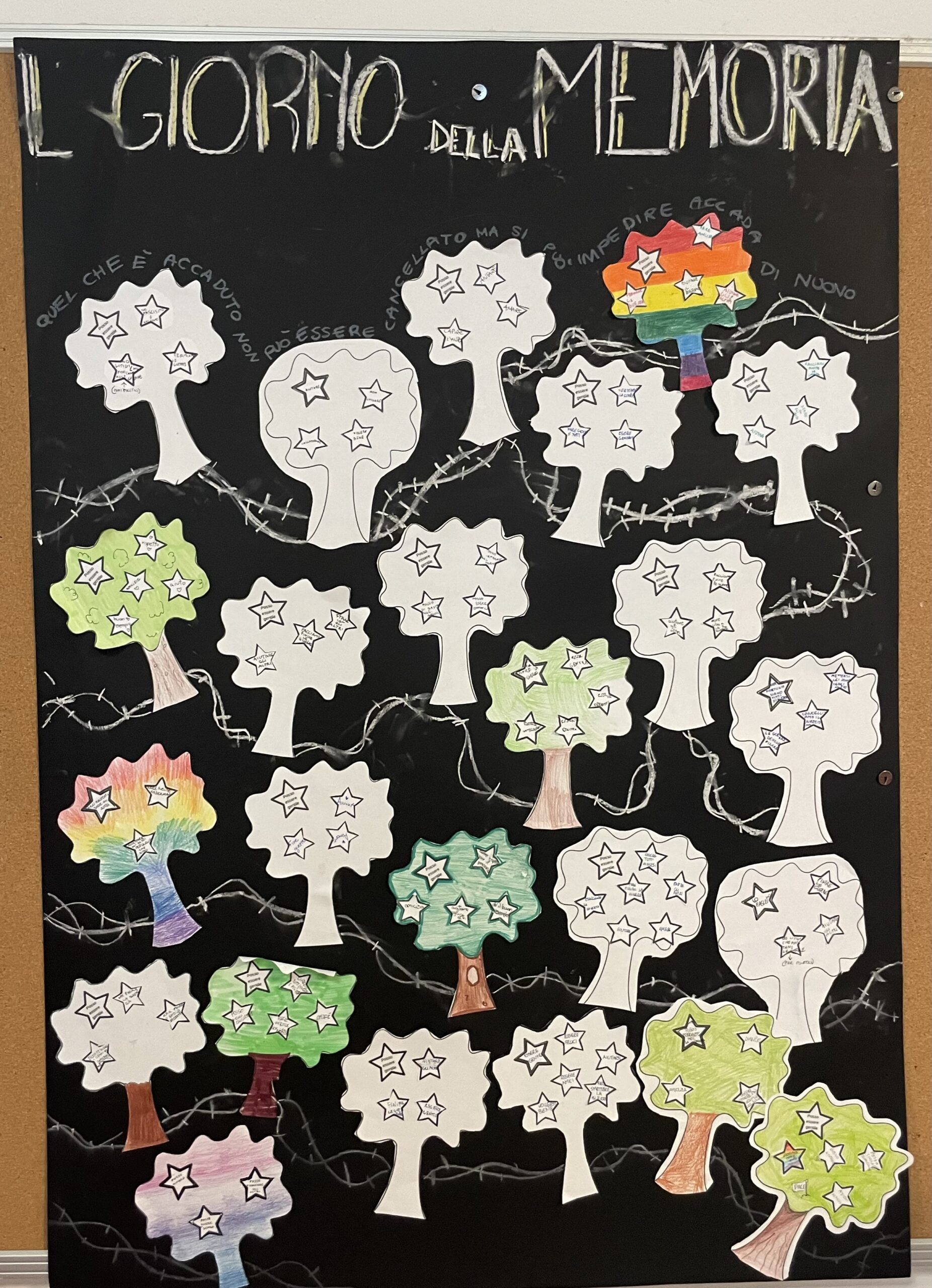 In occasione del Giorno della Memoria, celebrato il 27 gennaio, la classe quinta A di Cadine ha realizzato un cartellone in cui ogni alunno ha attaccato un alberello dove vengono riportati dei comportamenti gentili da mantenere verso il prossimo e la nostra società.