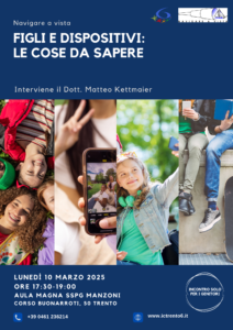 Lunedì 10 marzo vi aspettiamo numerosi all’incontro FIGLI E DISPOSITIVI: COSE DA SAPERE. Ci accompagnerà il dott. Matteo Kettmaier di Navigare a vista.