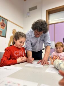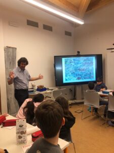 Martedì 18 marzo è venuto a scuola Fabio Vettori! È un artista super bravo che disegna delle formiche simpaticissime. Ci ha spiegato come fa a disegnarle: ci ha parlato delle loro facce buffe, di come si muovono, dei paesaggi intorno e anche di quanto devono essere grandi nel disegno. Ci ha raccontato che disegnava già quando era piccolo, ma all’inizio non disegnava ancora le formiche. Le sue prime formiche le ha disegnate nel 1972, quando era al primo anno delle superiori. Poi, nel 1982, ha fatto la sua prima mostra a Trento, dopo aver vinto un concorso con un disegno che si chiamava “Mela”. Nel 1985 ha fatto un quadro con gli acquarelli che si chiama “l’arcolabelo” e ha detto che è uno dei suoi preferiti! Ci ha fatto vedere anche dei cartoni animati con le sue formiche, ed erano davvero divertenti! Ci è piaciuto tantissimo conoscerlo e guardarlo mentre disegnava! Ora le sue formiche sono un po’ anche le nostre!