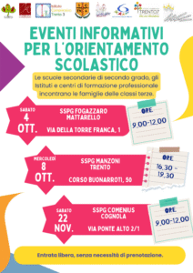 Si invitano genitori, ragazzi e ragazze delle classi terze SSPG all’incontro orientativo presso le nostre scuole: