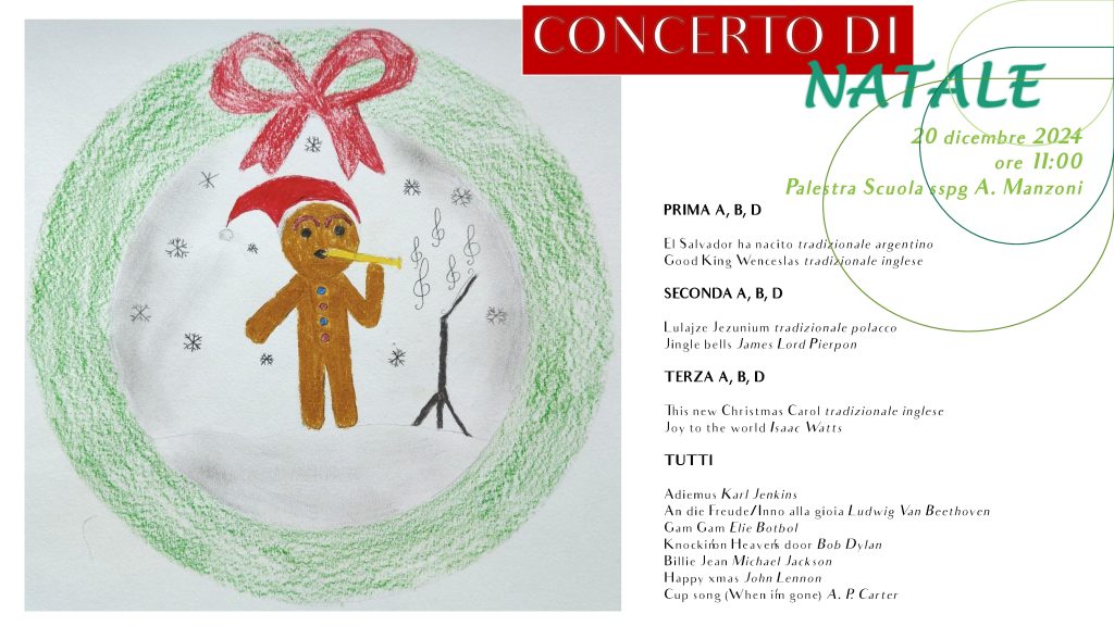 Anche quest’anno i nostri studenti e le nostre studentesse delle scuole Manzoni hanno preparato un concerto per festeggiare il Natale grazie alla preparazione dei nostri docenti di musica, con il seguente programma: