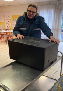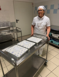 - Cristina, la cuoca che ogni giorno prepara con cura e passione il cibo, ci ha mostrato come vengono preparate le vaschette di cibo da consegnare.