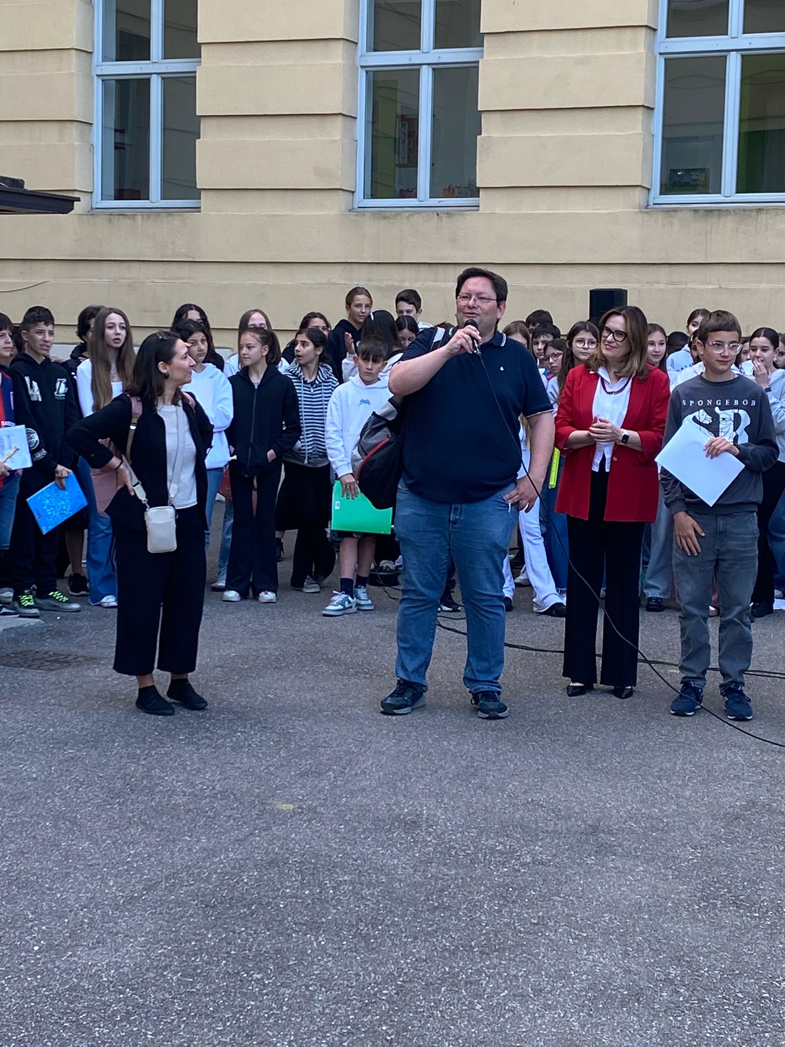 Studentesse e studenti tedeschi accolti questa mattina nel cortile della SSPG "A. Manzoni"